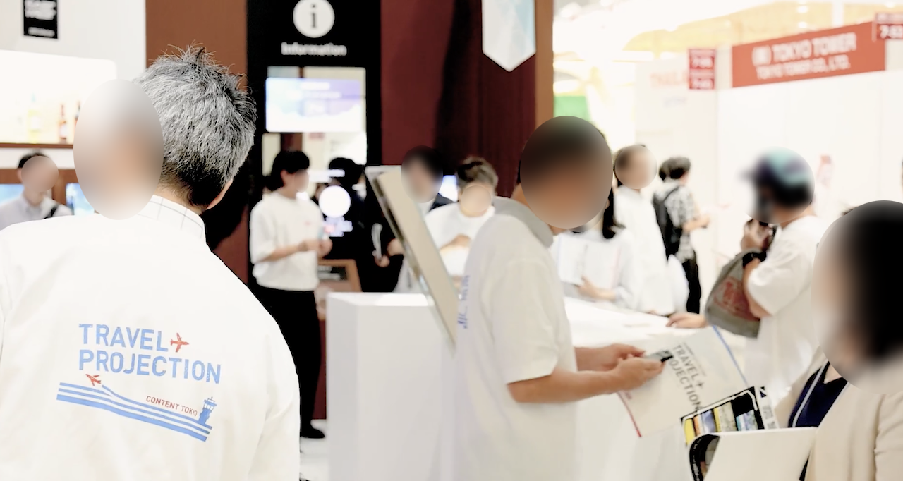 スタッフが着用するTシャツは、「TRAVEL × PROJECTION」のロゴと空港モチーフを用いたデザインに。