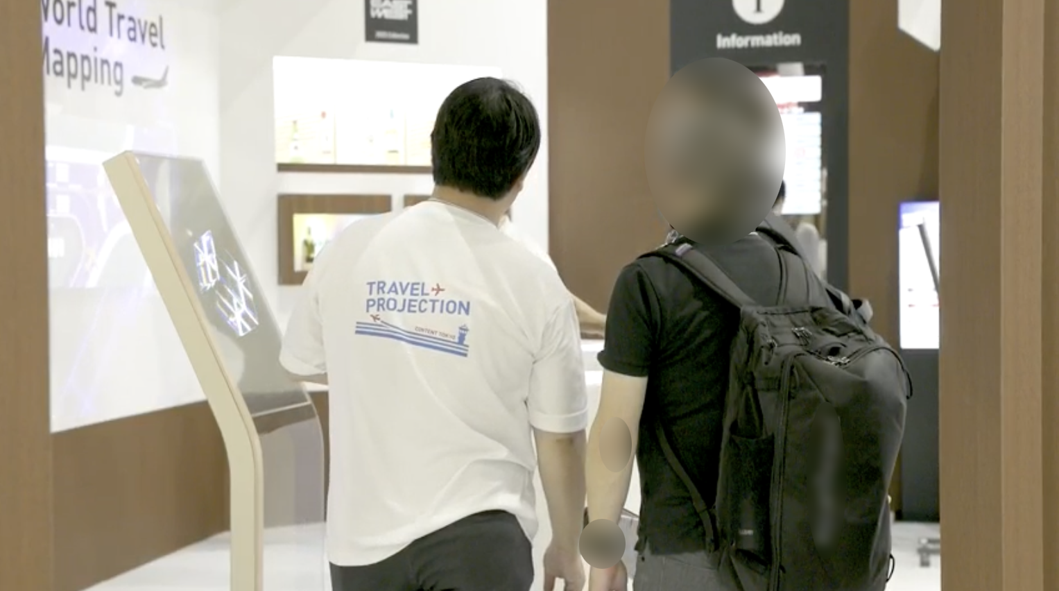 本事例では、映像制作会社イーストウエスト様の展示会ブースにおいて、「TRAVEL × PROJECTION」 をテーマに、空港体験をモチーフとした体験型空間デザインをIPCが担当しました。